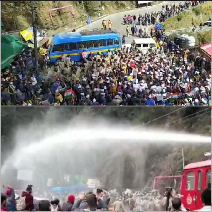 पुरानी पेंशन बहाली को लेकर प्रदेश भर से कर्मचारियों ने शिमला में विधानसभा घेराव किए जाने के इरादे से गुरुवार को सरकार के खिलाफ मोर्चा खोला। सैंकड़ों कर्मचारी सर्कुलर मार्ग से रैली निकालते हुए विधानसभा के तरफ आगे बढ़ रहे थे तभी पुलिस द्वारा उन्हें 103 सुरंग के पास ही रोक दिया गया जिससे गुस्साए कर्मचारी बीच सड़क पर ही बैठ गए और रोष प्रकट करते हुए जोरदार प्रदर्शन किया।
