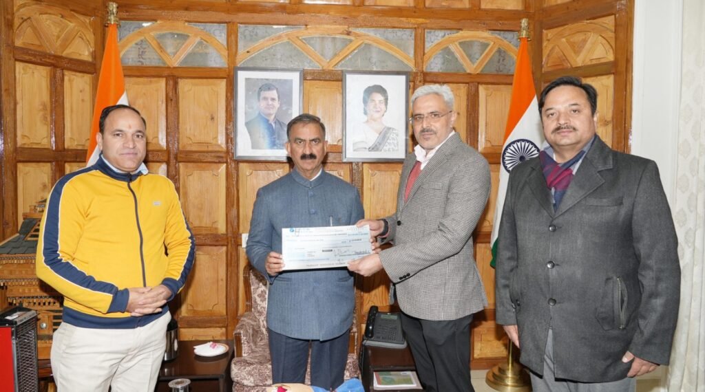 मुख्यमंत्री ठाकुर सुखविंद्र सिंह सुक्खू को ग्रीनको कंपनी के महाप्रबंधक अनूप बन्याल ने शिमला जिला के समेज में आपदा पीड़ितों की सहायता के लिए आज 1.35 करोड़ रुपये का चेक भेंट किया।