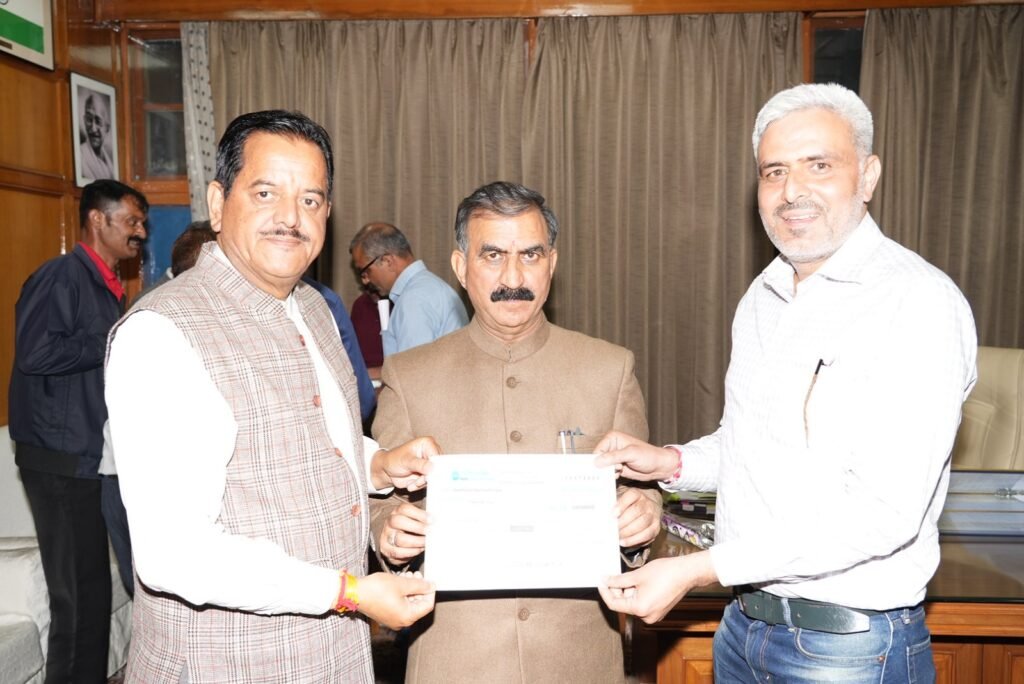 ग्रीनको फाउंडेशन के महाप्रबन्धक अनूप बनयाल ने गत सायं ग्रीनको फाउंडेशन की ओर से मुख्यमंत्री ठाकुर सुखविंदर सिंह सुक्खू को मुख्यमंत्री राहत कोष के लिए तीन करोड़ रुपये का चेक भेंट किया।