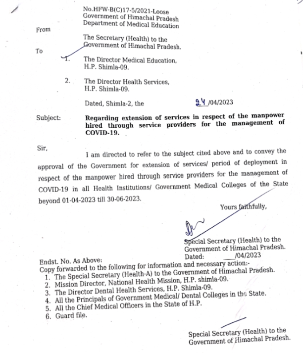 जारी रहेंगी कोविड वारियर्स की सेवाएं, अधिसूचना जारी