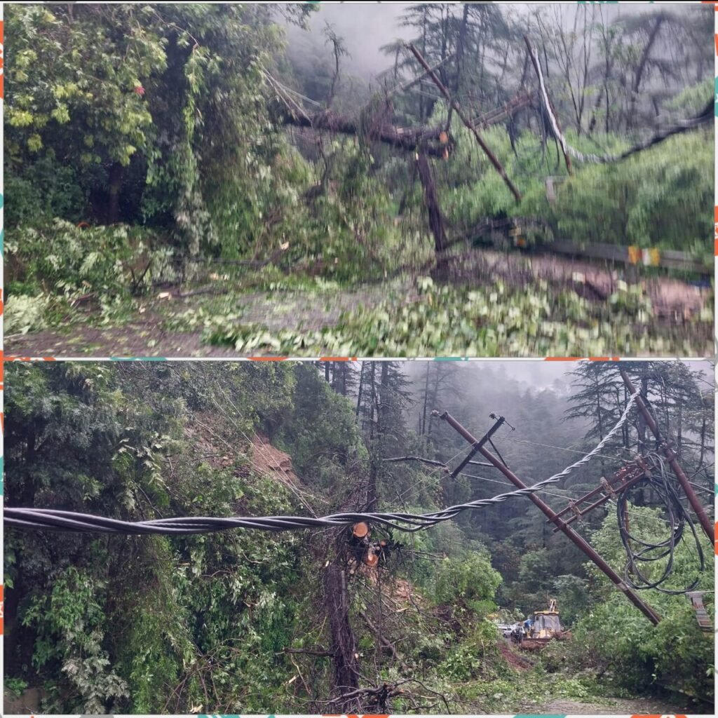 शिमला : टूटीकंडी-मेहली बाईपास पर हुआ लैंडस्लाइड, रामनगर रेनशेल्टर के समीप गिरे पेड़ और बिजली के पोल, यातायात ठप्प