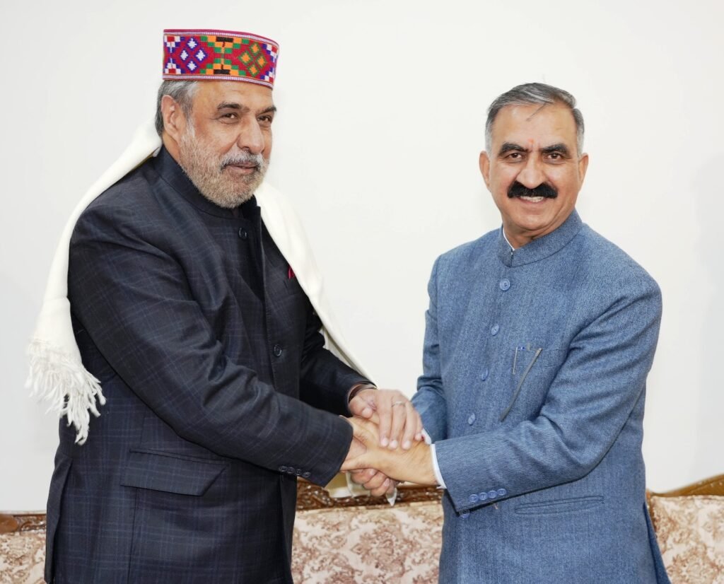 पूर्व केंद्रीय मंत्री एवं कांग्रेस के वरिष्ठ नेता आनंद शर्मा ने आज यहां ओक ओवर में मुख्यमंत्री ठाकुर सुखविंदर सिंह सुक्खू से भेंट की और विभिन्न मुद्दों पर चर्चा की। मुख्यमंत्री ने आनंद शर्मा को हिमाचली टोपी और शॉल भेंट कर सम्मानित किया।