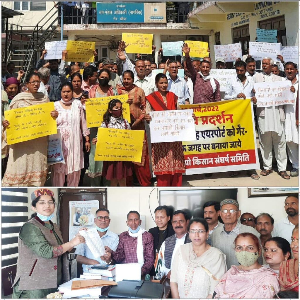 प्रस्तावित्त हवाई अड्डे के विरोध में बल्ह में लगे नारे “चार साला ते जोईरामा मनदा नी, बल्हा रे किसाना री सुणदा नी”किसानो ने निकाली विरोध रैली, एसडीएम के माध्यम से प्रधानमंत्री को सौंपा मांग पत्र