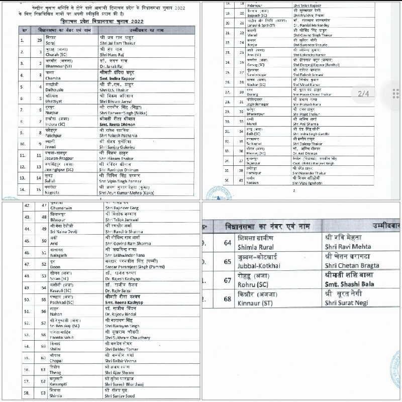 Himachal भाजपा ने हिमाचल विधानसभा चुनाव के लिए अपने 62 उम्मीदवारों की सूची की जारी HimachalSatyaNews October 19, 2022 शिमला भाजपा ने हिमाचल विधानसभा चुनाव के लिए अपने 62 उम्मीदवारों की सूची जारी कर दी है । Post navigation Previous माकपा ने हिमाचल विधानसभा चुनाव के लिए अपने 11 उम्मीदवारों की सूची की जारीNext कमल के फूल के सिपाही एकजुट होकर काम करते हैं, ऐसा ही करेंगे : संजय सूद Leave a Reply Cancel replyYour email address will not be published. Required fields are marked *Comment * Name * Email * Website Save my name, email, and website in this browser for the next time I comment. More Stories Himachal Shimla बीपीएल सूची के नाम काटना, गरीबों को योजनाओं से बाहर करने का संगठित षड्यंत्र : राकेश जमवाल January 4, 2026 HimachalSatyaNews Himachal Shimla मंडी से ऊना तक चलेगा जनजागरण अभियान, वरिष्ठ नेता करेंगे प्रेस वार्ताओं को संबोधित : भाजपा January 4, 2026 HimachalSatyaNews Himachal Kangra मुख्यमंत्री ने राजकीय महाविद्यालय धर्मशाला की मृतक छात्रा के परिजनों को ढांढस बंधाया, दोषियों के खिलाफ की जाएगी कड़ी कार्रवाई का दिया आश्वासन January 4, 2026 HimachalSatyaNews