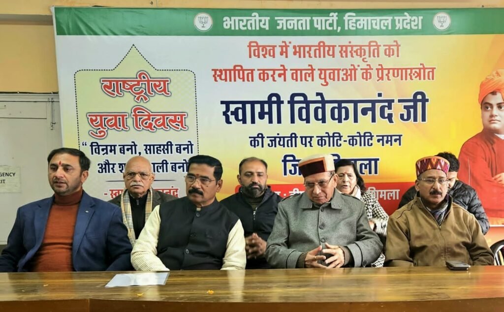 भाजपा जिला शिमला युवा मोर्चा द्वारा रविवार को युवा दिवस का कार्यक्रम द्विपकमल चक्कर में आयोजित किया गया। कार्यक्रम में प्रदेश संगठन महामंत्री सिद्धार्थन, पूर्व मंत्री एवं प्रदेश अध्यक्ष सुरेश भारद्वाज, उपाध्यक्ष संजीव कटवाल, कोषाध्यक्ष कमलजीत सूद, मीडिया प्रभारी कर्ण नंदा, जिला अध्यक्ष केशव चौहान वरिष्ठ नेता गणेश दत्त एवं रूपा शर्म विशेष रूप से उपस्थित रहें । कार्यक्रम की अध्यक्षता युवा मोर्चा के जिला अध्यक्ष हनीश चोपड़ा द्वारा की गई थी।
