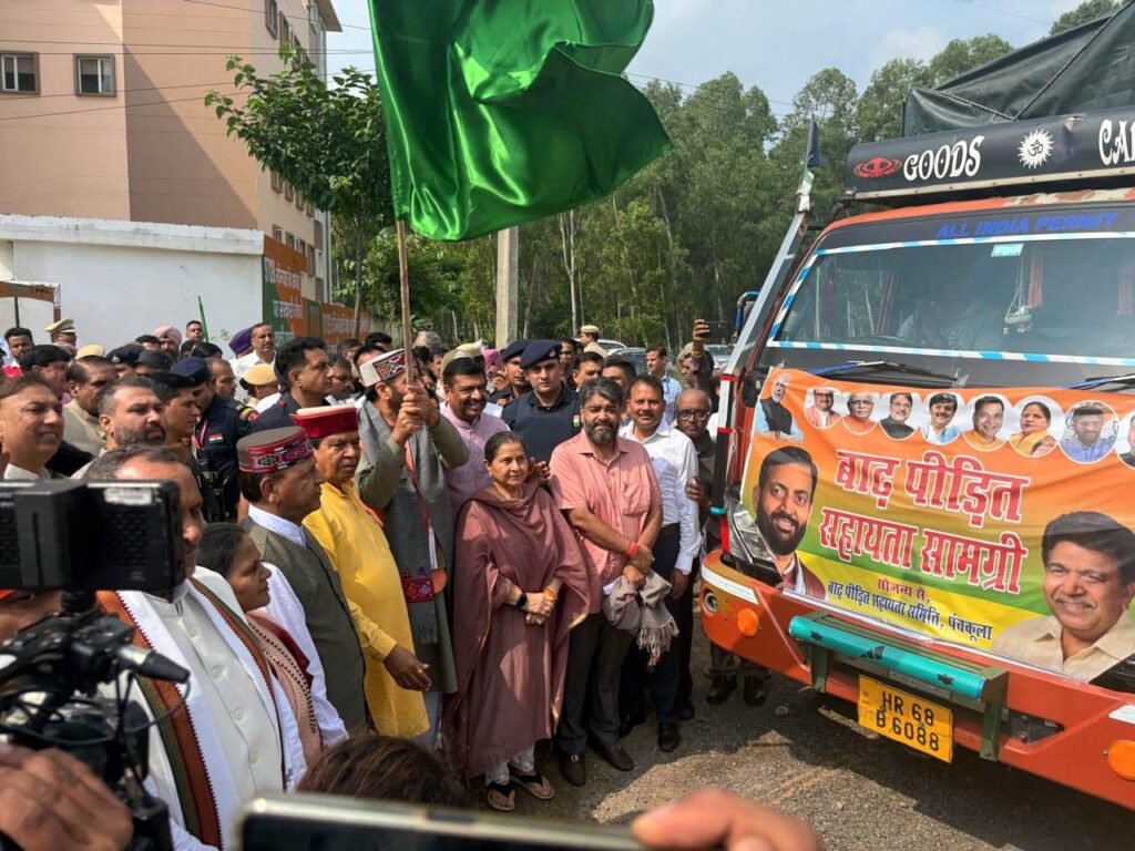 डाॅ. बिन्दल ने बताया कि पंचकूला, अम्बाला व आसपास के क्षेत्र के दानी महापुरूषों ने यह सामग्री एकत्र करके मुख्यमंत्री महोदय के कर कमलों द्वारा प्रेषित की। इस सामग्री में 186 क्विंटल चावल, 153 क्विंटल आटा, 20 क्विंटल नमक, 65 क्विंटल चीनी, 20 क्विंटल दाल, 25 किलो हल्दी, 750 किलो मसाले, 2400 लीटर खाने का तेल, 50 किलो चाय पत्ती, 1000 तिरपाले, 1021 कम्बल, 1500 गद्दे, 2600 साबून, 1200 पैकेट बिस्किट, 650 सैनेटरी पैड, बर्तन, टूथपेस्ट, पानी, मैगी, ओट्स व अन्य खुदरा सामान इस प्रकार 10 ट्रक सामग्री पंचकूला भाजपा कार्यालय से हरी झण्डी दिखाकर चम्बा के लिए रवाना की गई। इस सामग्री को चम्बा जिला के प्रभावित परिवारों में आवश्यकतानुसार वितरित किया जाएगा।