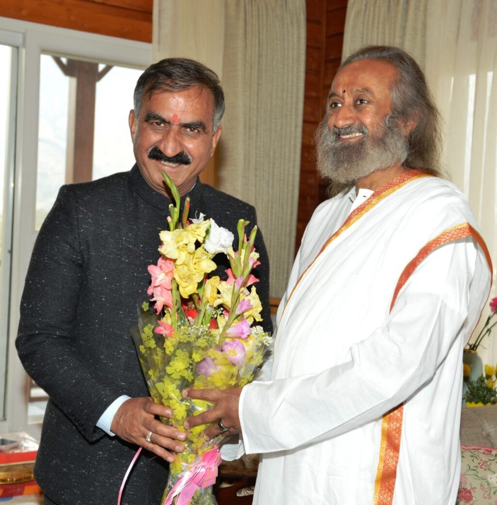मुख्यमंत्री ठाकुर सुखविंदर सिंह सुक्खू ने बुधवार को कांगड़ा जिला के गुजरेहड़ा में आध्यात्मिक गुरू श्री श्री रविशंकर से भेंट की और उन्हें हिमाचली टोपी और शॉल भेंट कर सम्मानित किया।
