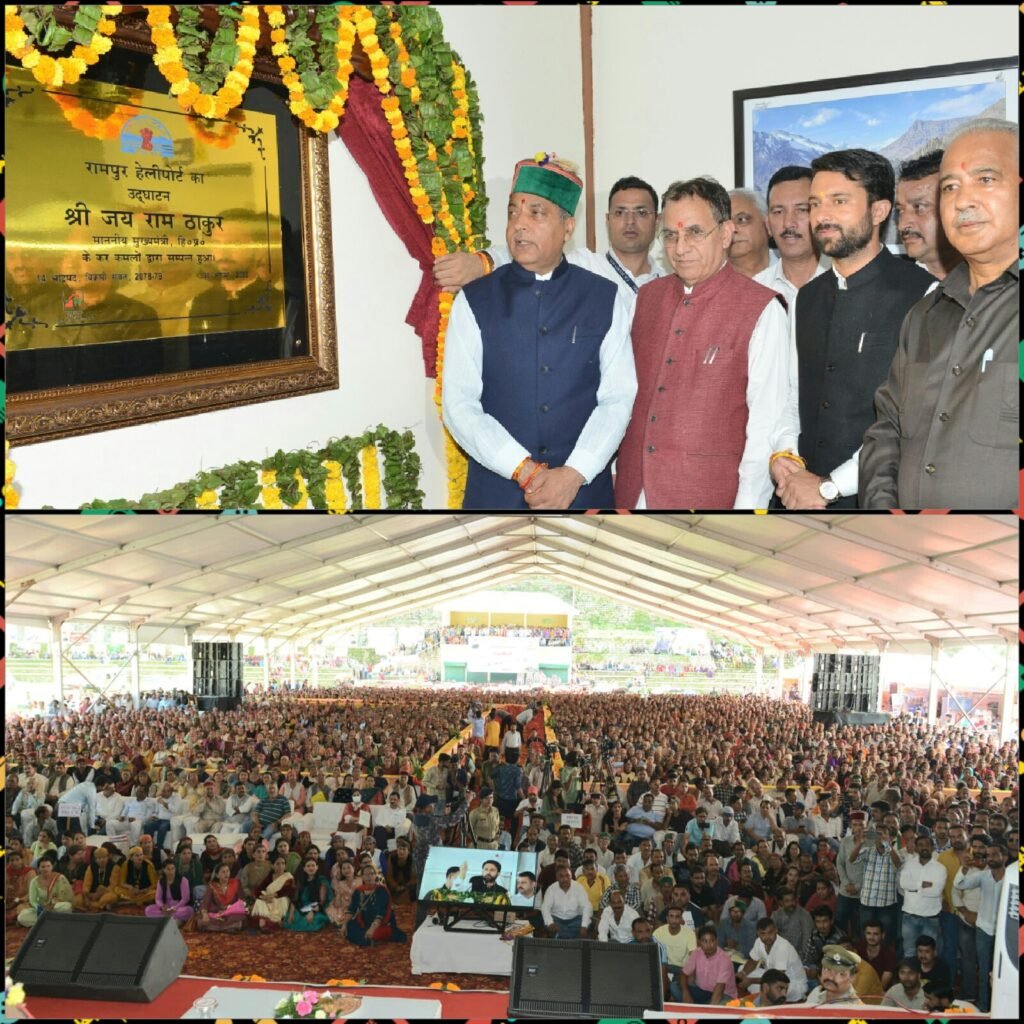 मुख्यमंत्री जय राम ठाकुर ने आज शिमला जिला के रामपुर में हेलीपोर्ट का उद्घाटन किया। इस अवसर पर उन्होंने कहा कि राज्य सरकार ने पर्यटकों को प्रदेश के अनछुए गंतव्य स्थलों की ओर आकर्षित करने के लिए अनेक पहल कीं हैं। राज्य में पर्यटन को प्रोत्साहन प्रदान करने तथा हवाई सेवाओं में सुधार के लिए राज्य सरकार प्रतिबद्ध है।