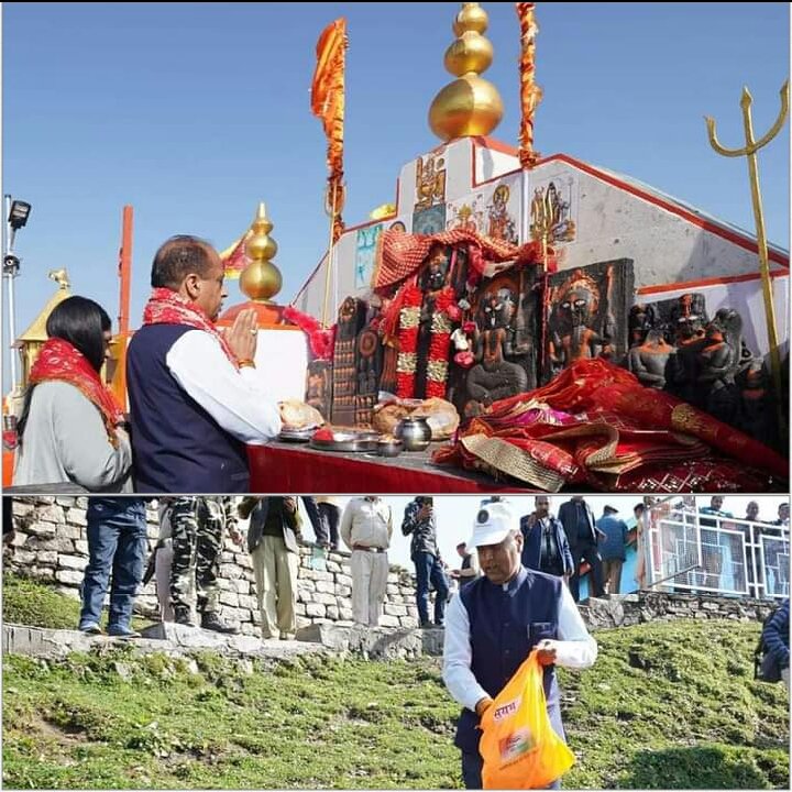 मुख्यमंत्री ने शिकारी माता मंदिर में नवाया शीश, सफाई अभियान में भी लिया भाग