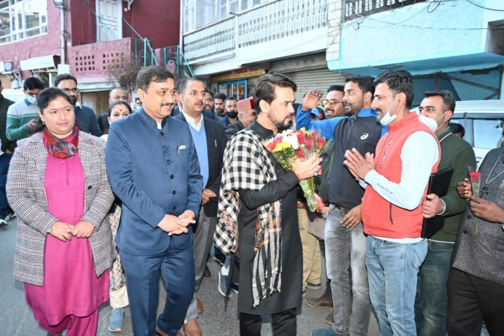 केंद्रीय सूचना एवं प्रसारण मंत्री अनुराग ठाकुर का भाजपा मुख्यालय दीपकमल चक्कर शिमला पहुंचने पर भाजपा प्रदेश अध्यक्ष एवं सांसद सुरेश कश्यप, महामंत्री त्रिलोक जम्वाल एवं बड़ी संख्या में कार्यकर्ताओं द्वारा ज़ोरदार स्वागत किया गया।