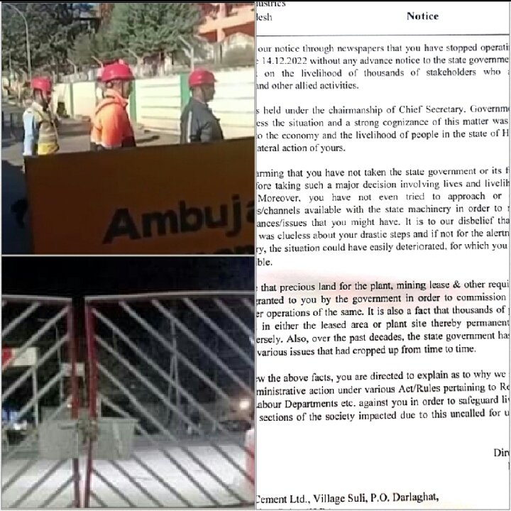 प्रदेश सरकार ने सोलन और बिलासपुर स्थित सीमेंट कंपनियों पर बड़ी कार्यवाही की तैयारी करने का मन बना लिया है ।बगैर सूचना दिए सीमेंट प्लांट बंद करने पर हिमाचल प्रदेश सरकार ने अम्बुजा और एसीसी दोनों सीमेंट कंपनियों को नोटिस जारी कर दिए हैं। सरकार ने दोनों सीमेंट कंपनियों से एक सप्ताह में इसका जवाब मांगा है। सरकार की ओर से जारी किए गए नोटिस में कंपनी प्रबंधन को कहा गया है कि सीमेंट प्लांट बंद करने से पहले सरकार, स्थानीय प्रशासन और संबंधित विभागों को सूचित क्यों नहीं किया गया । सरकार ने चेताया है कि अगर कम्पनियाँ नही मानती है तो नियमों के तहत लाइसेंस भी रद्द हो सकता है और कंपनी के खिलाफ श्रम कानून के तहत भी केस हो सकता है। यहां बता दें कि सीमेंट कंपनियों और ट्रांसपोर्टरों के बीच मालभाड़े को लेकर विवाद चल रहा है जिसके चलते कंपनी ने घाटे का हवाला देकर प्लांट पर ताले जड़ दिए है। कम्पनियों के इस दबाव भरे फैसले से वर्तमान में न केवल 15 हजार कामगारों और ट्रक ऑपरेटरों के सामने एकाएक लोगों रोजगार का गंभीर संकट पैदा हो गया है तो वहीं ट्रक आवाजाही से जुड़े व्यवसायों से जुड़े ढाबा कारोबार और मैकेनिक वर्क्स के साथ-साथ स्पेयर पार्ट के कामगार और कारोबारियों को भी भविष्य की चिंता सताने लगी है । इसी बीच शुक्रवार को दाड़लाघाट में अम्बुजा ऑपरेटर्स की 9 यूनियनों की बैठक हुई । जिसमें आगामी रणनीति पर विचार मंथन किया गया ।