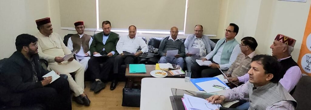 बैठक में मंत्री सुरेश भारद्वाज, राजीव सहजल, खुशी राम बालनाटा, जे एस राणा, के आर भारती और अन्य गणमान्य सदस्य उपस्थित रहे।