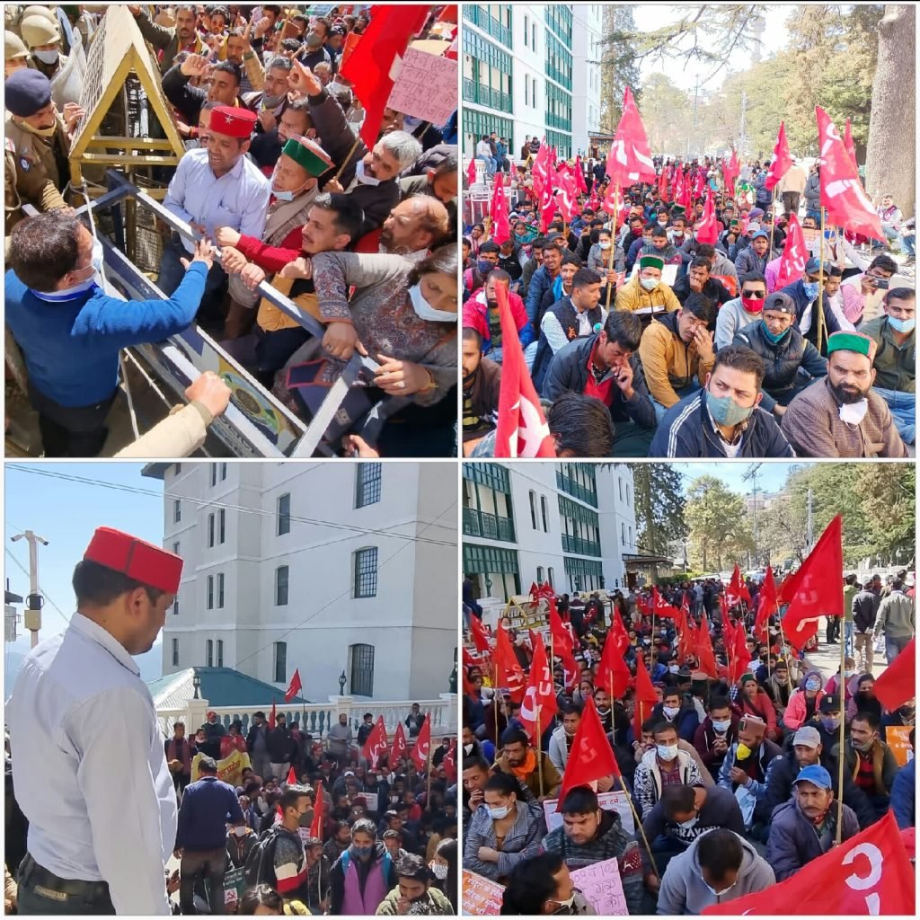 हिमाचल प्रदेश आउटसोर्स कर्मचारी यूनियन सम्बन्धित सीटू के बैनर तले प्रदेश के सैंकड़ों मजदूरों ने अपनी मांगों को लेकर विधानसभा घेराव किया। इसके बाद यूनियन प्रतिनिधियों ने मुख्यमंत्री को मांग-पत्र सौंपा। मुख्यमंत्री ने आश्वासन दिया कि आउटसोर्स कर्मियों के लिए शीघ्र ही नीति बनाने का रास्ता साफ होगा। आउटसोर्स कर्मियों की रैली बारह बजे पंचायत भवन शिमला से शुरू हुई व 103 से होते हुए विधानसभा के बाहर पहुंची। यहां पर प्रदर्शनकारी उग्र हो गए व सरकार से आउटसोर्स कर्मियों के लिए नीति बनाने व उन्हें रेगुलर करने,26 हज़ार रुपये वेतन देने व सुप्रीम कोर्ट के समान काम के समान वेतन के निर्णय को लागू करने की मांग करने लगे। उग्र प्रदर्शन को देखते हुए जिला प्रशासन ने तुरंत हस्तक्षेप किया व मुख्यमंत्री से प्रदर्शनकारियों को बातचीत का न्यौता दिया।