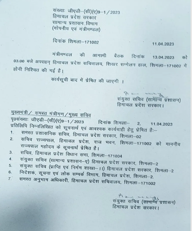 13 अप्रैल को राज्य सचिवालय में होगी मंत्रिमंडल बैठक