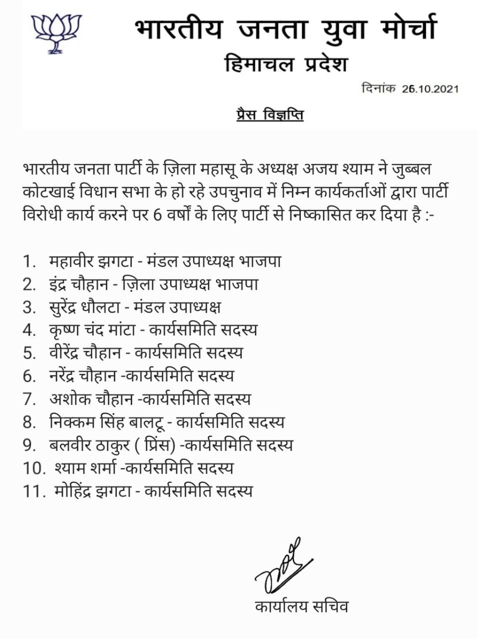 उन्होंने कहा कि भाजपा एक अनुशासित राजनीतिक दल है और किसी भी प्रकार की पार्टी विरोधी गतिविधियों को बर्दाश्त नहीं किया जाएंगे।