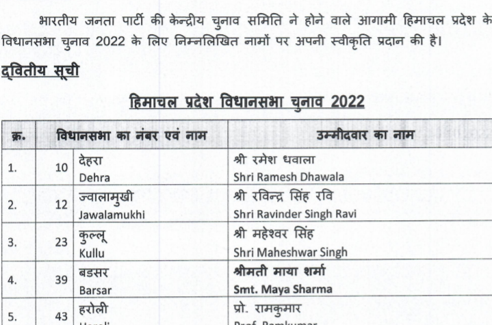 शिमला हिमाचल प्रदेश विधानसभा चुनाव के लिए भाजपा ने सभी 68 प्रत्याशियों के टिकट...