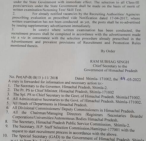 Shimla अब तृतीय श्रेणी कर्मचारियों की भर्ती के लिए नहीं होगी 15 अंकों की मूल्यांकन प्रक्रिया, अधिसूचना जारी May 5, 2022 HimachalSatyaNews शिमला अब तृतीय श्रेणी कर्मचारियों की भर्ती के लिए नहीं होगी 15 अंकों की...