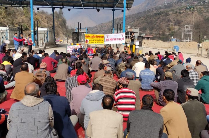 सोलन फोरलेन प्रभावित किसान संघ के बैनर तले स्थानीय लोगों ने टोल प्लाजा के...