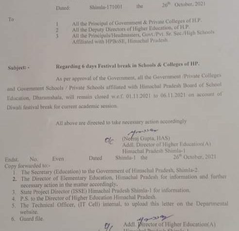 हिमाचल दिवाली पर छह दिन बंद रहेंगे स्कूल-कॉलेज, शिक्षा विभाग ने घोषित की छुट्टियां...