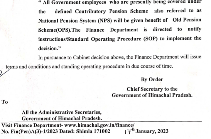 शिमला प्रदेश सरकार हर ओल्ड पेंशन स्कीम बहाली का कार्यालय ज्ञापन जारी कर दिया...
