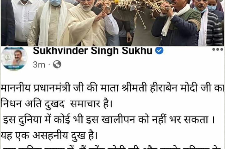शिमला मुख्यमंत्री सुखविंदर सिंह सुक्खू ने प्रधानमंत्री नरेन्द्र मोदी की माता श्रीमती हीराबेन मोदी...