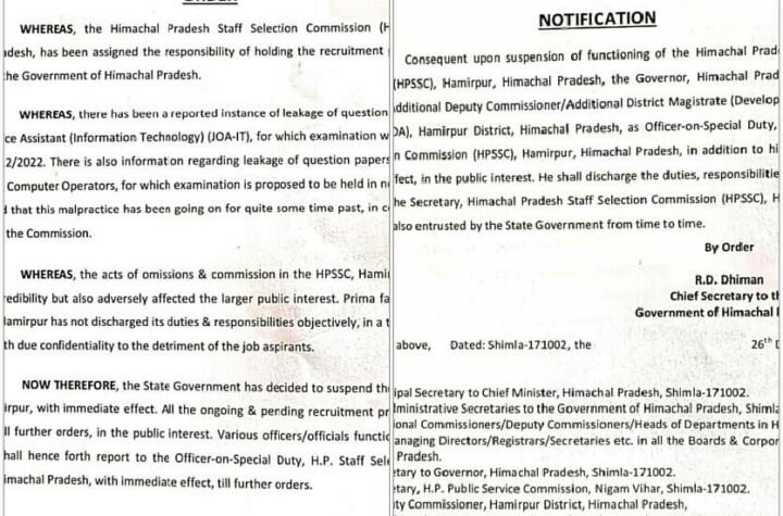 शिमला सरकारी नोकरियों के लिए ली जाने वाली परीक्षाओं संबंधी धांधलियों में प्रश्न पत्र...