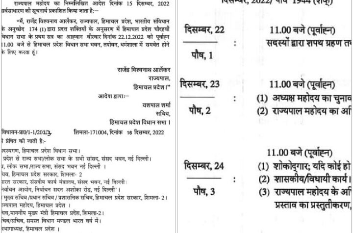 शिमला हिमाचल विधानसभा का शीतकालीन सत्र 22 से 24 दिसम्बर तक धर्मशाला में होगा।...