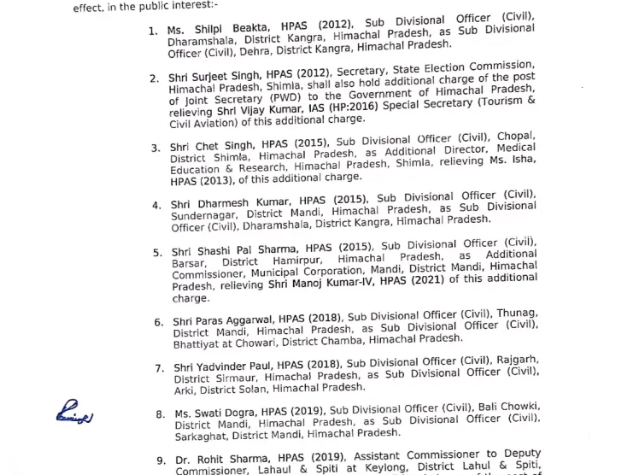 शिमला सुक्खू सरकार के एचएएस अधिकारियों का एक और बड़ा तबादला