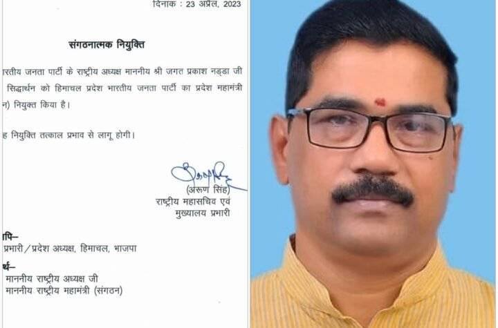 दिल्ली/शिमला भाजपा हाईकमान ने सिद्धार्थन को हिमाचल महामंत्री संगठन पद पर नियुक्त किया है...