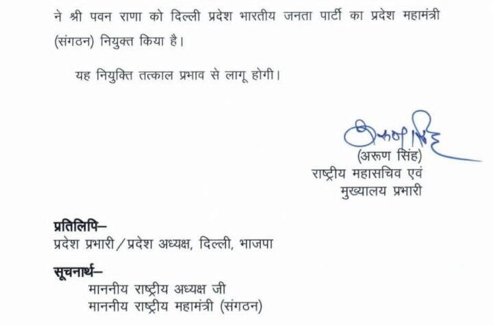 दिल्ली/शिमला पवन राणा होंगे दिल्ली भाजपा के नए संगठन महामंत्री