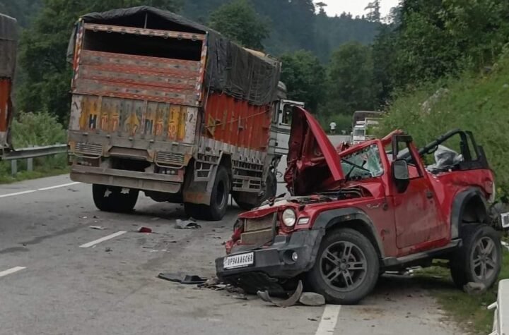 कुल्लू कुल्लू में आधी रात को ट्रक से थार गाड़ी के टकराने पर ,गाड़ी...