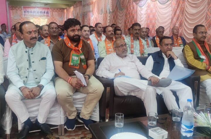 चंबा चंबा में एक ग्राम केंद्र प्रमुख सम्मेलन में भाग लेते हुए भाजपा के...
