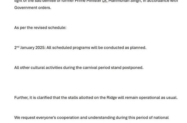 शिमला विंटर कार्निवल 1 जनवरी 2025 तक के लिए स्थगित Winter Carnival in Shimla...