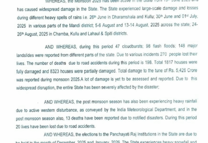 शिमला हिमाचल प्रदेश में इस वर्ष मानसून में हुई तबाही को देखते हुए प्रदेश...
