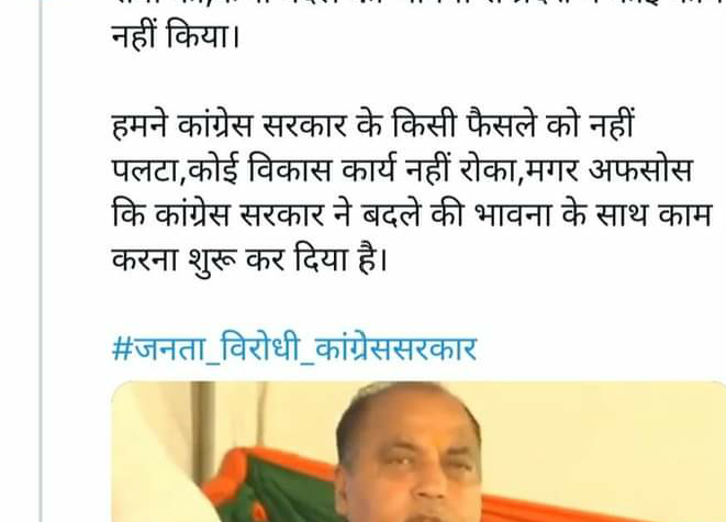 शिमला पूर्व मुख्यमंत्री जयराम ठाकुर ने सोशल मीडिया के जरिए हिमाचल में नवनिर्मित सुक्खू...