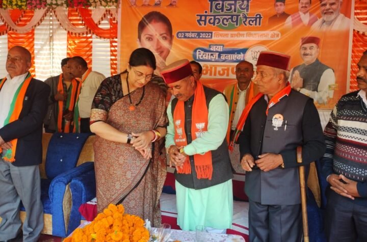 शिमला केन्द्रीय मंत्री स्मृति ईरानी ने सुन्नी में भाजपा प्रत्याशी रवि मेहता के पक्ष...