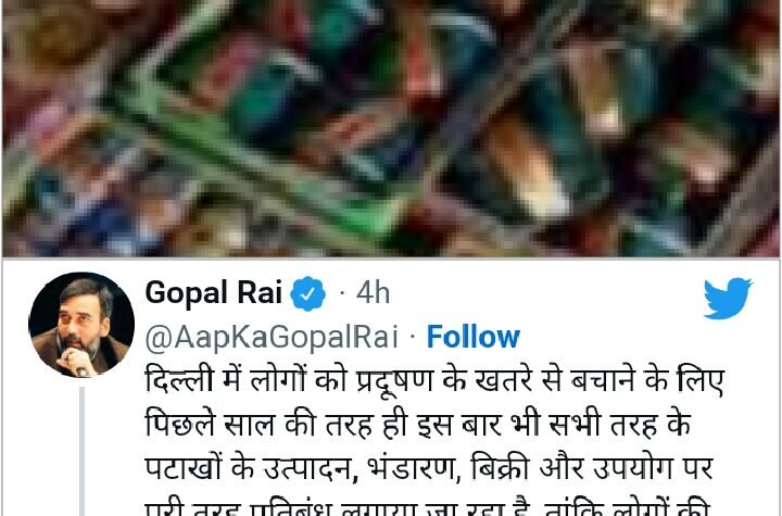 शिमला दिल्ली की आप सरकार के पर्यावरण मंत्री गोपाल राय ने ट्वीट कर कहा...